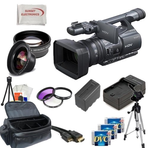 Sony HDR-FX1000 Handycam HDV Camcorder Kit. Package Includes: 0.45X Wide Angle Lens, 2X Telephoto Lens, 3 Piece Filter Kit(UV-CPL-FLD), Extended Life Replacement Battery, Rapid Travel Charger, 3 Pack Mini DV Tapes, HDMI Cable, 50" Tripod, Table Top Tripod, Screen Protectors, Cleaning Kit, SSE Microfiber Cleaning Cloth and Large Carrying CaseSony HDR-FX1000 Handycam HDV Camcorder Kit. Package Includes: 0.45X Wide Angle Lens, 2X Telephoto Lens, 3 Piece Filter Kit(UV-CPL-FLD), Extended Life Replacement Battery, Rapid Travel Charger, 3 Pack Mini DV Tapes, HDMI Cable, 50" Tripod, Table Top Tripod, Screen Protectors, Cleaning Kit, SSE Microfiber Cleaning Cloth and Large Carrying Case Detail : This Package Includes: