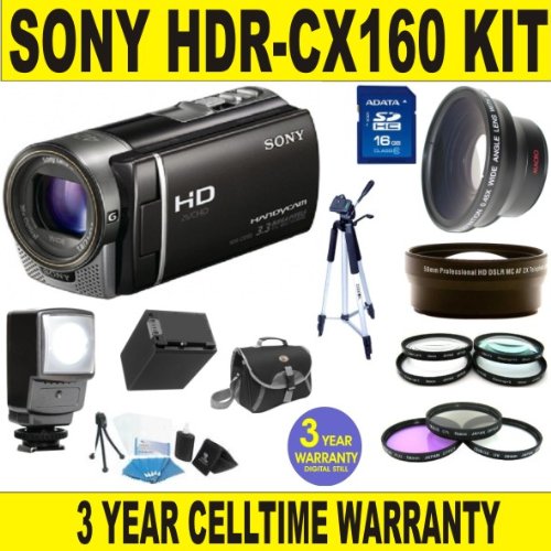 Product Reviews: Most of the buyer reviews reveal that the BRAND NEW SONY HDR-CX160 CAMCORDER w/ .45X SUPER WIDE ANGLE LENS + 2X TELEPHOTO LENS + 4 PIECE MACRO KIT + LED VIDEO LIGHT + 16GB MEMORY CARD + 3 YEAR CELLTIME WARRANTY are excellent product. Also, it is a fairly good product for the price. This is best for people on a tight budget. Yet, these are mild problems, which manageable and will be easily solved. Overall, It�s a quality product and we are absolutely recommend it! In case you still want to know more about this product, so read the reports of those who have already used it.