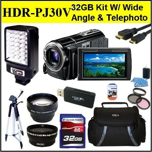 Sony HDR-PJ30V HDRPJ30V 1080p High Definition 32GB Handycam Camcorder Package W/ 32GB SD Memory + 2X Telephoto Lens + Wide Angle Lens + Video Light + Case + Tripod & Much More!!!Sony HDR-PJ30V HDRPJ30V 1080p High Definition 32GB Handycam Camcorder Package W/ 32GB SD Memory + 2X Telephoto Lens + Wide Angle Lens + Video Light + Case + Tripod & Much More!!! Detail : Sony HDR-PJ30V 32GB Accessory Package Includes:Sony Handycam HDR-PJ30V 32GB 1080p HD Video Camera + 32GB SDHC Memory Card + USB SDHC Memory Card Reader + 30mm Multicoated 3-PC Filter Kit + 30mm 0.45X Wide Angle Lens With built in Macro + 30mm 2X Telephoto lens + LED-10 LED Video Light + Deluxe Carrying Case + 57" Tripod With Carrying Case + Mini HDMI-HDMI Cable + LCD Screen Protectors + 3 PC Lens Cleaning Kit + Table Top Tripod + Memory Card Wallet