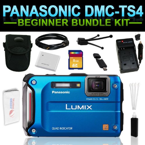 Buy Cheap Panasonic Lumix DMC-TS4 12.1 MP Digital Camera 8GB Beginner Kit (Blue) includes (Charger, Battery, 8GB SD Card, Tripod, HDMI Cable, Camera Case, Card Reader, Cleaning Kit) Now.