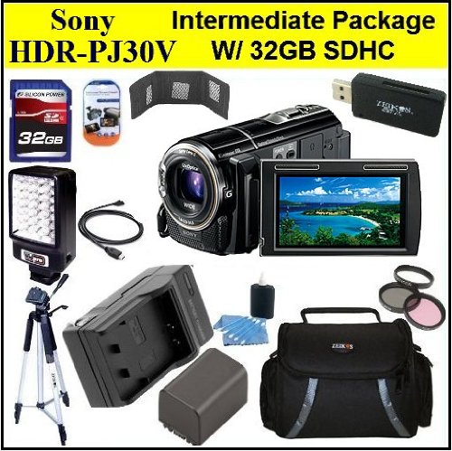 Sony HDR-PJ30V HDRPJ30V 1080p High Definition 32GB Handycam Camcorder Intermediate Package W/ 32GB SD Memory + Video Light + Battery + Battery Charger + Case + Tripod & Much More!!!Sony HDR-PJ30V HDRPJ30V 1080p High Definition 32GB Handycam Camcorder Intermediate Package W/ 32GB SD Memory + Video Light + Battery + Battery Charger + Case + Tripod & Much More!!! Detail : Sony HDR-PJ30V Intermediate Package Includes:Sony Handycam HDR-PJ30V 32GB 1080p HD Video Camera + 32GB SDHC Memory Card + USB SD Memory Card Reader + NPFV100 Lithium Rechargeable Battery + Rapid AC/DC Battery Charger PT13 + 30mm Multicoated 3-PC Filter Kit + LED Video Light + Deluxe Carrying Case + 57" Tripod With Carrying Case + LCD Screen Protectors + 3PC Lens Cleaning Kit + Table Top Tripod + Mini HDMI - HDMI