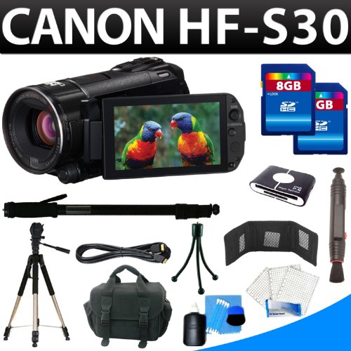 Canon Vixia Hf-s30 Hfs30 32gb Internal Flash Memory Camcorder + Deluxe Camorder Accessory KitCanon Vixia Hf-s30 Hfs30 32gb Internal Flash Memory Camcorder + Deluxe Camorder Accessory Kit Detail : The Canon VIXIA HF S30 Flash Memory Camcorder is more than just a way to record your memories it provides you with numerous ways to flex your creativity while keeping your budget in check. The fact that the HF S30 shoots 1920 x 1080 high def video makes it appealing, but the HF S30 goes beyond basic 1920 x 1080i with 24p native capabilities. Recording with the 24p frame rate you can spice up the HD recording with a cinematic look that's great for aspiring film makers. In addition, the 24p Cinema Mode and 30p Progressive mode (both recorded at 60i) create videos that are also cinematic or Internet-friendly.