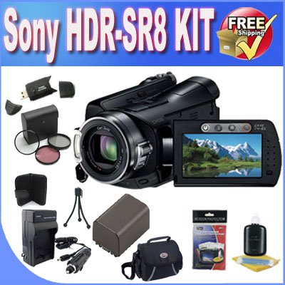 Sony HDR-SR8 100GB Hard Drive Digital Camcorder + Extended Life Battery + Ac/Dc Rapid Charger + 3 Piece Filter Kit + Deluxe Case w/Strap + Accessory Saver Bundle!Sony HDR-SR8 100GB Hard Drive Digital Camcorder + Extended Life Battery + Ac/Dc Rapid Charger + 3 Piece Filter Kit + Deluxe Case w/Strap + Accessory Saver Bundle! Detail : Kit Includes!