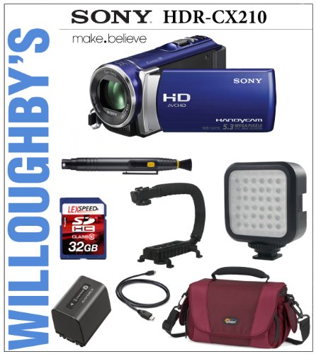 Sony HDR-CX210 Blue + Sony NP-FV70 Spare Battery + Sunpak Compact Video Light + LowePro Camera Bag Plus 32GB Deluxe KitSony HDR-CX210 Blue + Sony NP-FV70 Spare Battery + Sunpak Compact Video Light + LowePro Camera Bag Plus 32GB Deluxe Kit Detail : The Sony HDR-CX210 Camcorder Kit Includes: