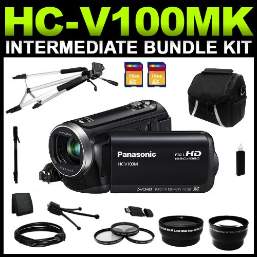 Panasonic HC-V100MK Black 1/5.8" MOS 2.7" LCD 34X Optical Zoom Full HD Flash Memory Camcorder Intermediate Bundle Kit includes Charger, Battery, 32GB SD Memory, Carrying Case, Full Size Tripod, Monopod, HDMI Cable, Card Reader, (2) Lenses, Filters and Cleaning KitPanasonic HC-V100MK Black 1/5.8" MOS 2.7" LCD 34X Optical Zoom Full HD Flash Memory Camcorder Intermediate Bundle Kit includes Charger, Battery, 32GB SD Memory, Carrying Case, Full Size Tripod, Monopod, HDMI Cable, Card Reader, (2) Lenses, Filters and Cleaning Kit Detail : ***Included in your Panasonic HC-V100MK Full HD SD Camcorder Intermediate Bundle Kit***